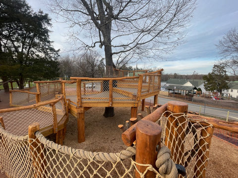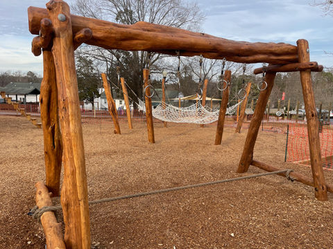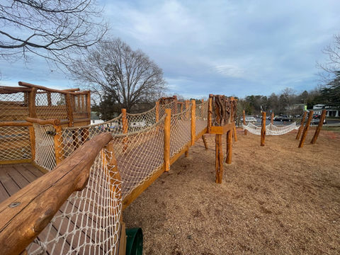 This playground was built as a phase two to the the Summit School's existing playground. It incorporates our standard natural materials - black locust and mountain laurel. We created this high play factor scape with a 10'x10' sandbox, a monkey ring element, and a 16'x16' skyhammock. The central play structure houses four different elements, as well as a bridge that provides accessbility for all.